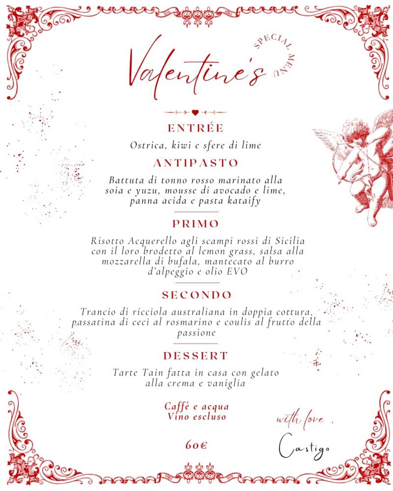Ecco a voi il Menù per il San Valentino al Castigo